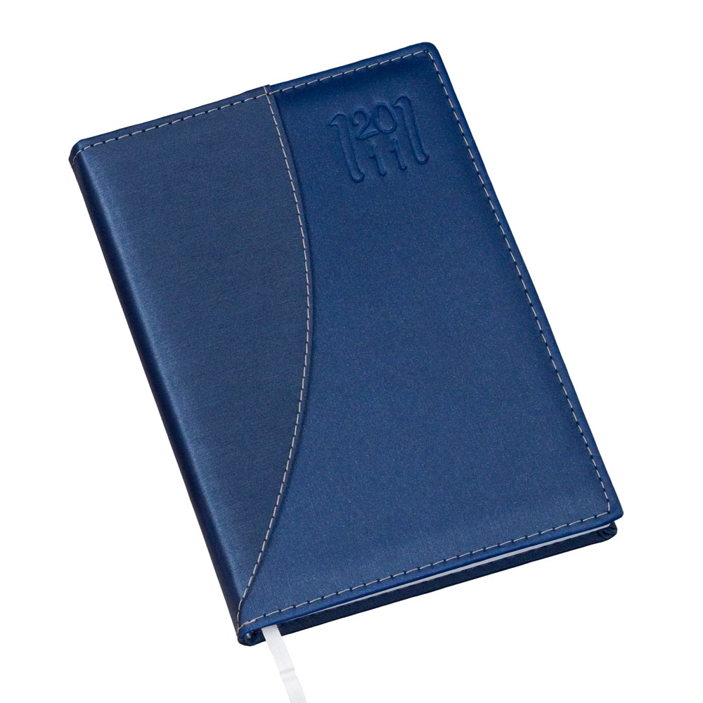 Agenda diária com 344 páginas em papel off set 63gr, 8 páginas em papel couchê 115gr com mapas da América do Sul, Região Norte, Nordeste, Centro Oeste, Sudeste e Sul mais o mapa do Brasil – Índice telefônico – Planejamento para próximo ano. Capa metalizada azul com azul