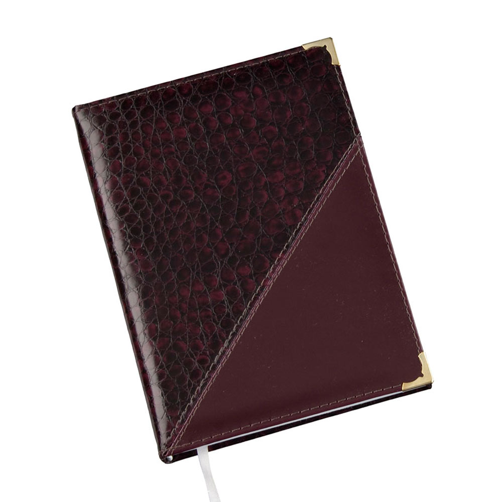 Agenda diária com 344 páginas em papel off set 63gr, 8 páginas em papel couchê 115gr com mapas da América do Sul, Região Norte, Nordeste, Centro Oeste, Sudeste e Sul mais o mapa do Brasil – Índice telefônico – Planejamento para próximo ano. Capa croco diagonal vinho.