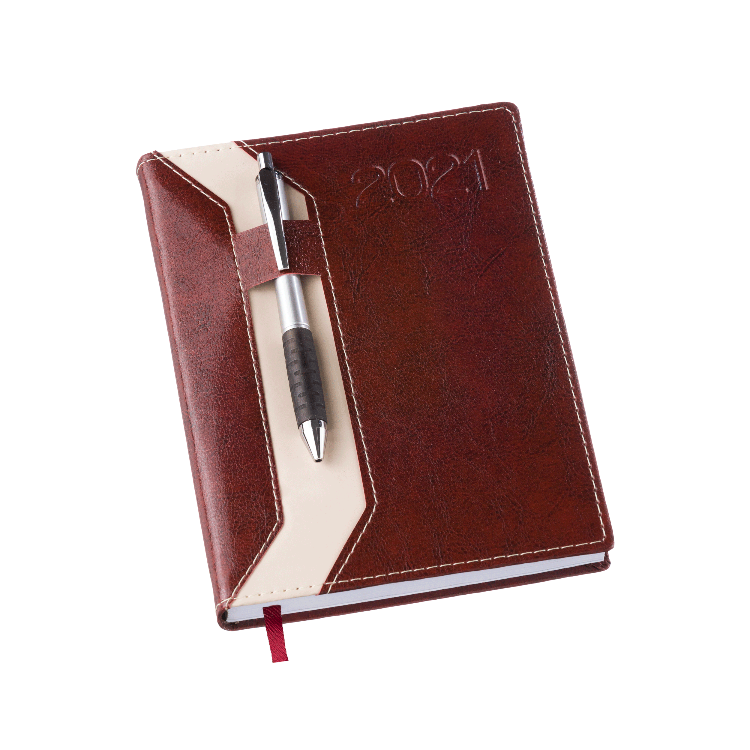 Agenda diária com 344 páginas em papel off set 63gr, 8 páginas em papel couchê 115gr com mapas da América do Sul, Região Norte, Nordeste, Centro Oeste, Sudeste e Sul mais o mapa do Brasil – Índice telefônico – Planejamento para próximo ano.
