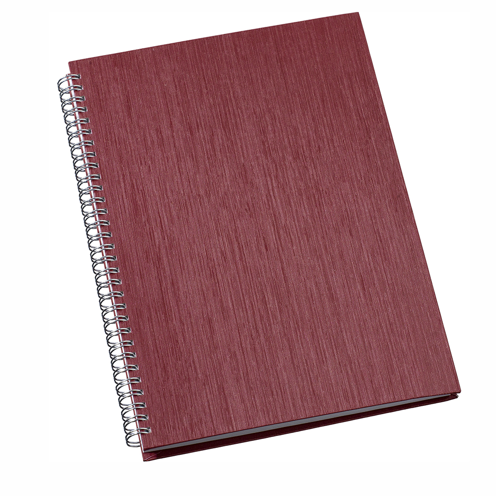 Caderno de Negócios com 100 folhas, 2×2 cores, Índice telefônico, Planejamento para próximo ano. Capa metalizada vermelha.