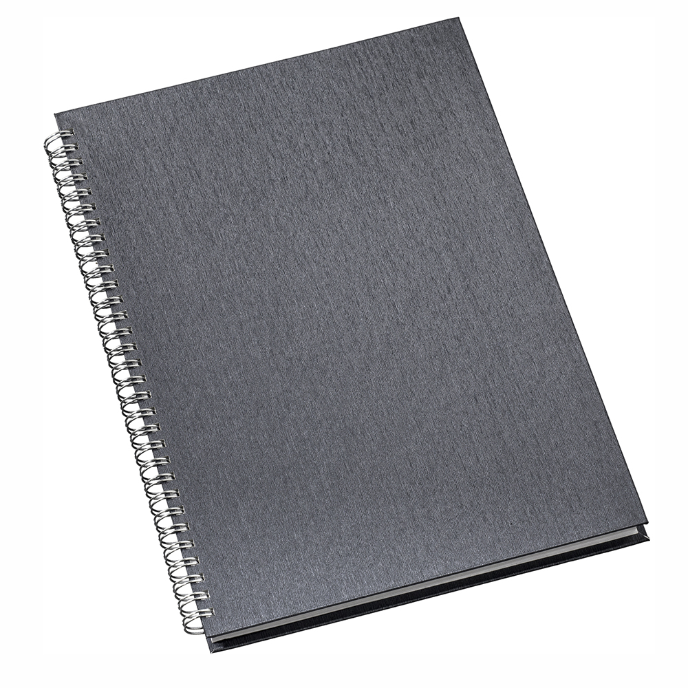 Caderno de Negócios com 100 folhas, 2×2 cores, Índice telefônico, Planejamento para próximo ano. Capa metalizada preta.