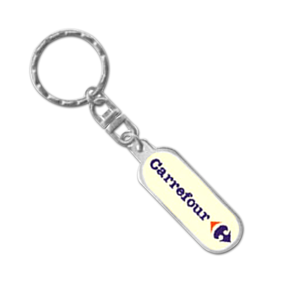 Chaveiro Medalha com impressão digital resinada e corrente giratória.