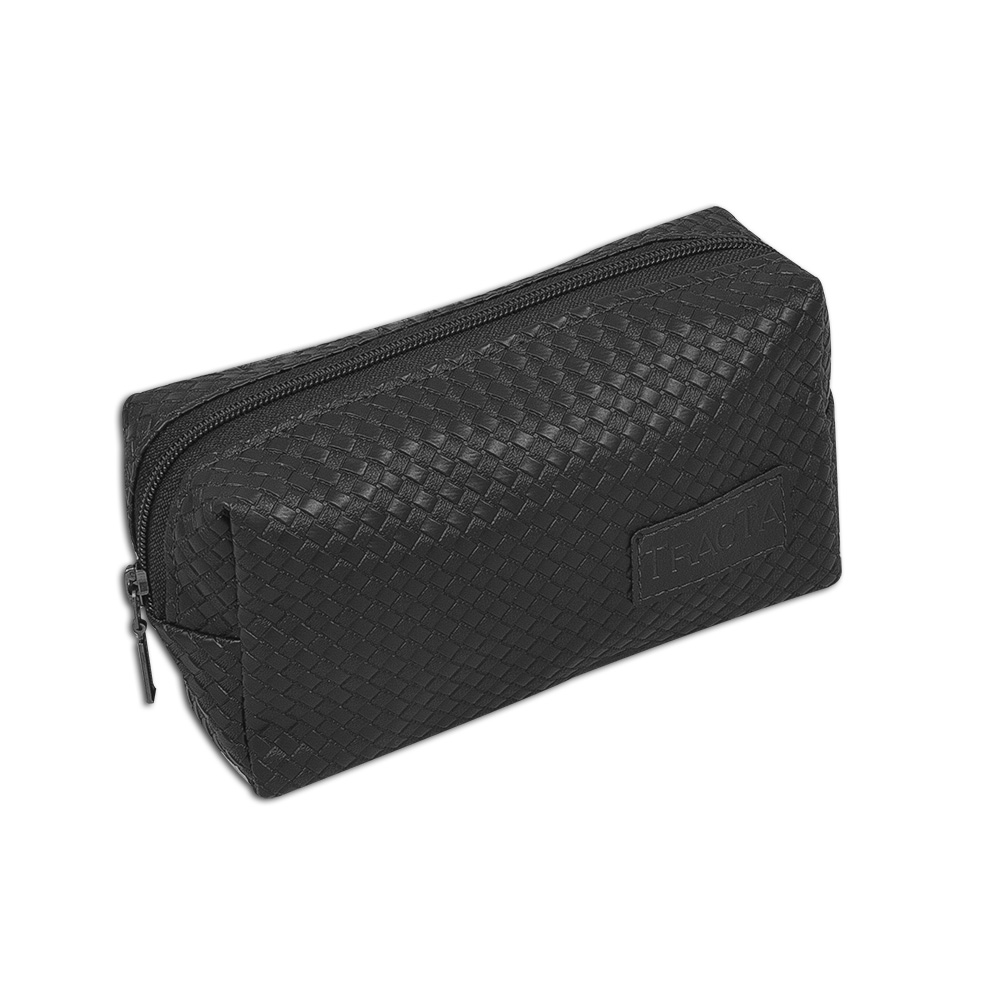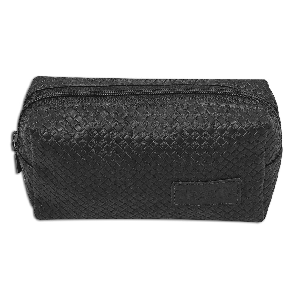 Necessarie confeccionada em couro legítimo, couro ecológico e couro sintético pespontada dois compartimentos com fechamento por zíper e cursor em metal personalização em baixo relevo.