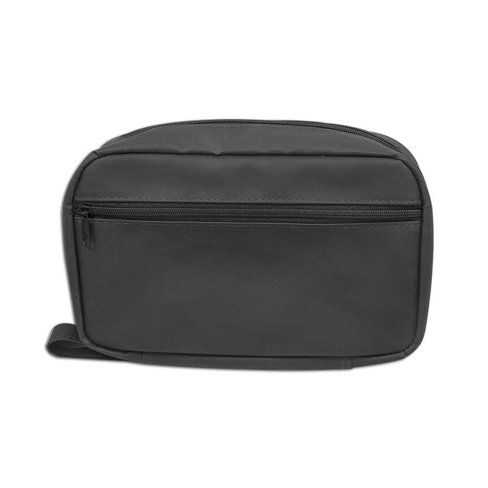 Necessaire organizadora em nylon 70 plastificado com víeis e alça lateral, parte interna com gancho metal; 3 bolsos internos superior; bolso de tela e compartimento com fechamento em ziper. Bolso externo.