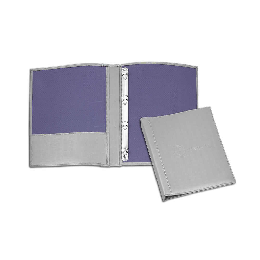 Pasta Fichário com detalhe na capa com ferragem de 4 argolas , aba para encaixe de folhas e documentos. Pasta personalizada em baixo relevo com sua logomarca.