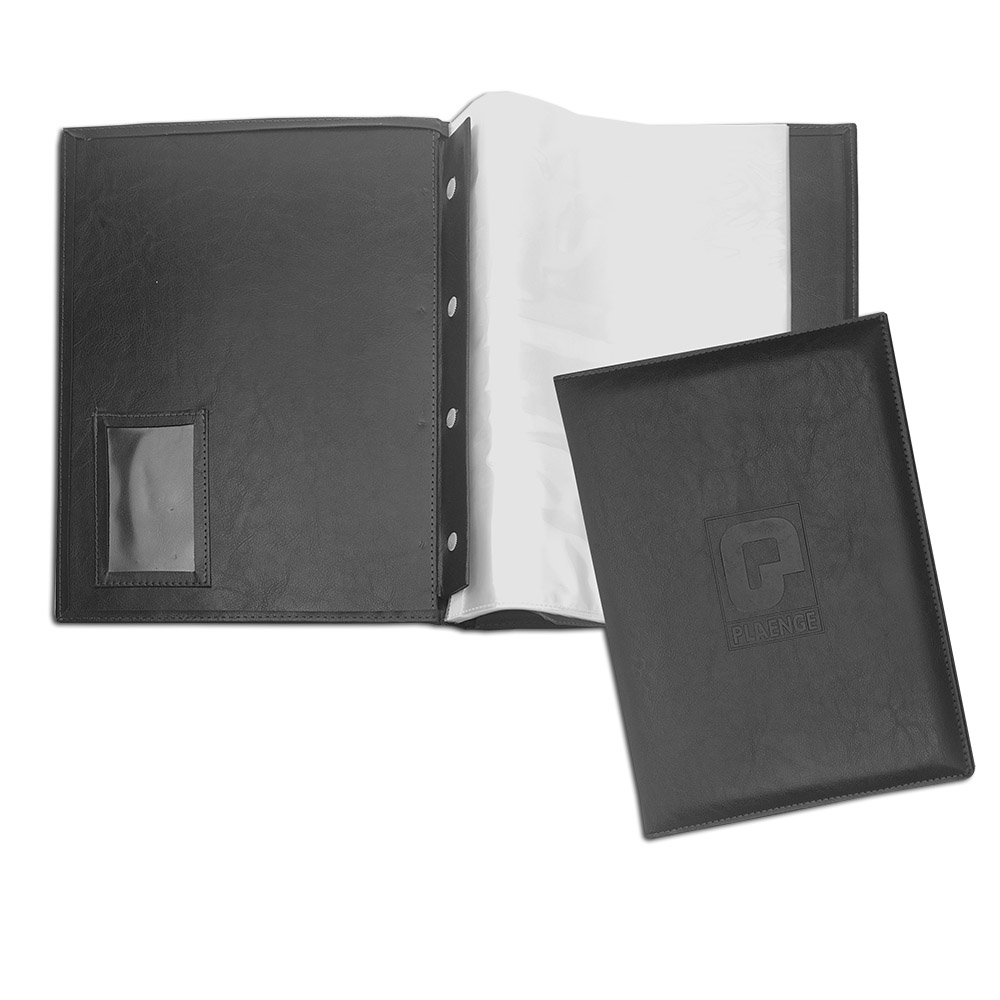 Pasta Tabela contendo 20 plásticos reforçados, confeccionada em couro legítimo, couro sintético ou couro ecológico (Recouro), porta cartão com visor. Pasta Tabela Personalizada em baixo relevo ou silk screen com sua logomarca.