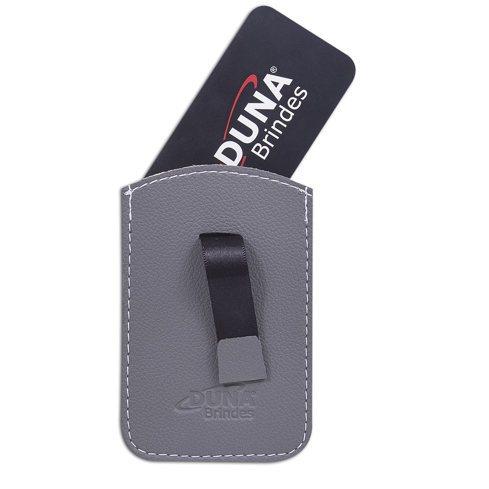 Porta Cartões com dispositivo para puxar o cartão. Confeccionado em couro legítimo, couro sintético ou couro ecológico (Recouro). Porta Cartões personalizado em baixo relevo.