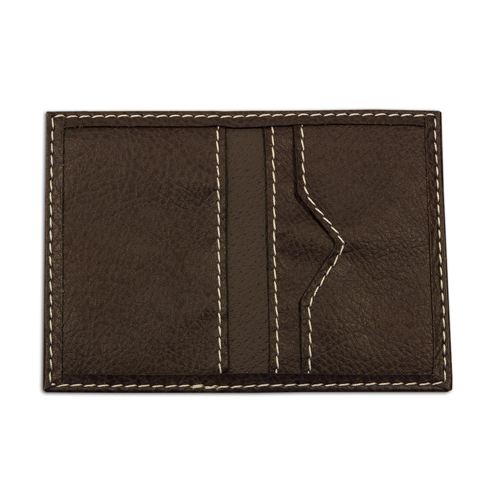 Porta cartão personalizado com três divisórias confeccionado em couro legítimo, couro sintético ou couro ecológico (Recouro) personalizado em baixo relevo.