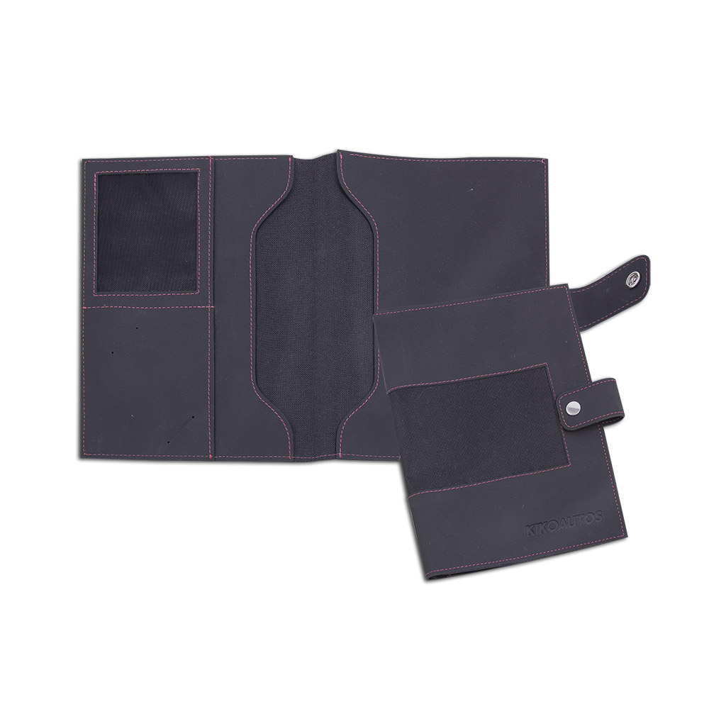 Porta Manual automotivo com detalhe recortado na capa confeccionado em couro legítimo, sintético ou couro ecológico. Possui duas aba para encaixe manual, porta documentos e portas cartões. Fechamento com lingueta e botão de pressão.