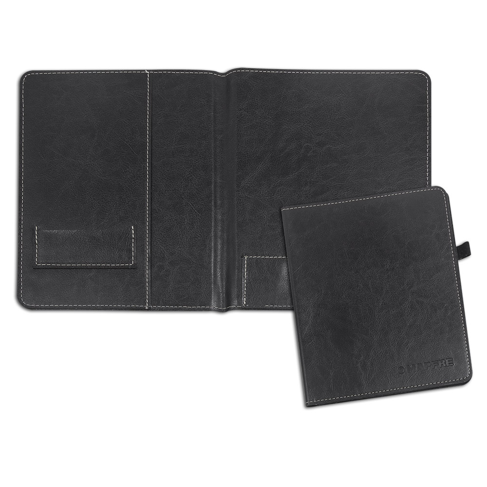 Porta Manual confeccionado em couro legítimo, couro sintético ou couro ecológico (Recouro) com duas divisórias para cartão e duas para manuais. Porta manual Personalizado em baixo relevo ou silk screen com seu logotipo.