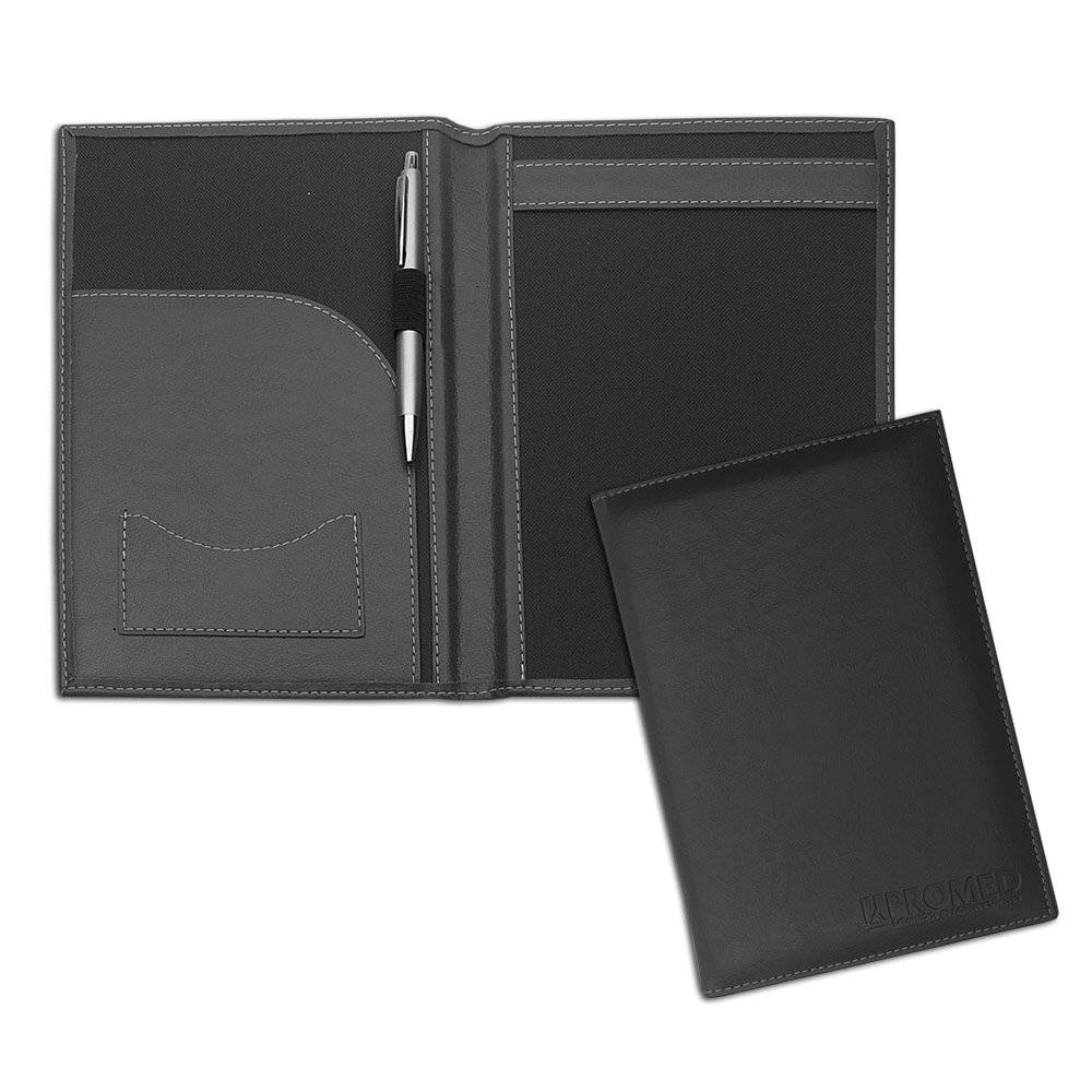Porta Receituário com uma aba para papéis, porta cartão, porta caneta e porta bloco (A5). (Caneta não inclusa)